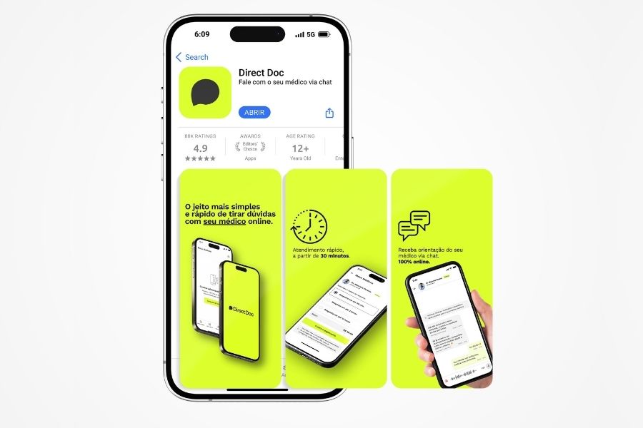 O projeto estruturou o DirectDoc como uma plataforma digital mais clara e confiável, alinhando experiência de produto, comunicação e posicionamento de marca para apoiar o crescimento da plataforma no ecossistema de saúde digital.